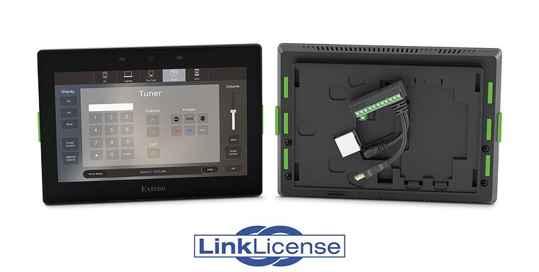 Extron is pleased to introduce Extron LinkLicense for TouchLink Control and the TLCA 1 TouchLink Control Adapter. These powerful Pro Series control options will transform your wall mount, tabletop, and Cable Cubby TouchLink Pro touchpanels into powerful, all-in-one control systems. They will add flexibility and power to our latest TouchLink Pro touchpanels, including the TLP Pro 525 Series, TLP Pro 725 Series, TLP Pro 1025 Series and TLP Pro 300M. Extron LinkLicense for TouchLink Control is a powerful, easy way to turn your TouchLink Pro touchpanel into a full-featured, standalone control system. With this LinkLicense, you can control your AV devices via Ethernet directly from the Ethernet port on the touchpanel. And, by adding the optional TLCA 1 TouchLink Control Adapter, you can control a broad range of system devices directly from the touchpanel using the variety of ports on the control adapter. The Extron TLCA 1 is a TouchLink Control Adapter designed to add traditional control ports to your touchpanel installed with a LinkLicense for TouchLink Control. It features two bidirectional serial ports, one digital input, one IR port, and two relays for control of sources, directly at the touchpanel. |